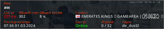 Играет на Counter Strike 1.6 сервере. Страна: ВеликобританияПервый раз замечен 03:40 21.02.2021