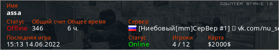 Играет на Counter Strike 1.6 сервере. Страна: РоссияПервый раз замечен 18:13 06.02.2021