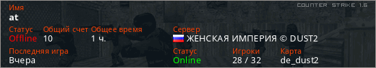 Последний раз был в сети Вчера Игрок с таким ником замечен на 10 серверах