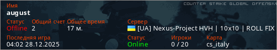 Играет на Counter Strike Global Offensive сервере. Страна: УкраинаПервый раз замечен 05:36 26.12.2025