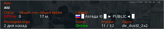 Играет на Counter Strike 1.6 сервере. Страна: РоссияПервый раз замечен 12:37 04.04.2026