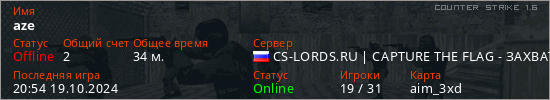 Играет на Counter Strike 1.6 сервере. Страна: РоссияПервый раз замечен 14:35 18.03.2024
