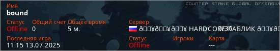 Играет на Counter Strike Global Offensive сервере. Страна: РоссияПервый раз замечен 11:13 13.07.2025