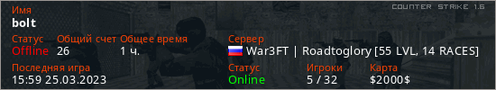 Играет на Counter Strike 1.6 сервере. Страна: РоссияПервый раз замечен 15:32 09.02.2021