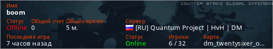 Играет на Counter Strike Global Offensive сервере. Страна: РоссияПервый раз замечен 15:08 23.03.2026