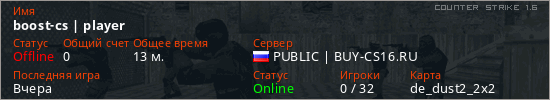 Последний раз был в сети Вчера Игрок с таким ником замечен на 35 серверах