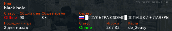 Играет на Counter Strike 1.6 сервере. Страна: РоссияПервый раз замечен 09:14 16.03.2026