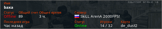 Последний раз был в сети Вчера Игрок с таким ником замечен на 33 серверах