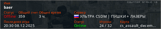 Последний раз был в сети 20:30 08.12.2025 Игрок с таким ником замечен на 3 серверах