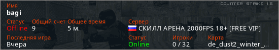 Последний раз был в сети Вчера Игрок с таким ником замечен на 7 серверах