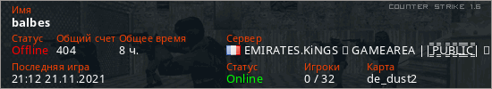 Играет на Counter Strike 1.6 сервере. Страна: ФранцияПервый раз замечен 11:16 13.11.2021