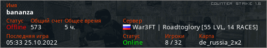 Играет на Counter Strike 1.6 сервере. Страна: РоссияПервый раз замечен 05:39 19.10.2022