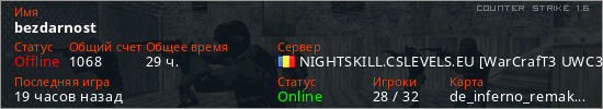 Последний раз был в сети 17 часов назад Игрок с таким ником замечен на 10 серверах