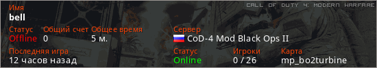 Играет на Call of Duty 4: Modern Warfare сервере. Страна: РоссияПервый раз замечен 21:31 17.03.2026