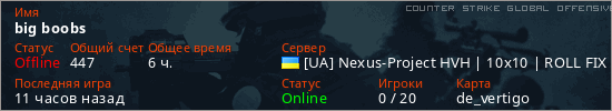 Играет на Counter Strike Global Offensive сервере. Страна: УкраинаПервый раз замечен 16:23 08.03.2026