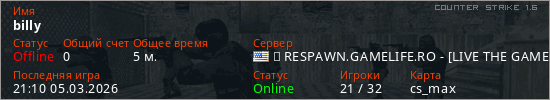 Играет на Counter Strike 1.6 сервере. Страна: СШАПервый раз замечен 21:08 05.03.2026