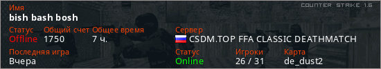 Играет на Counter Strike 1.6 сервере. Страна: РоссияПервый раз замечен 01:27 22.07.2025