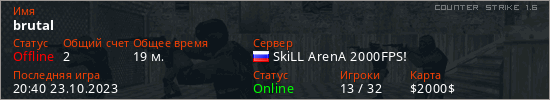 Играет на Counter Strike 1.6 сервере. Страна: РоссияПервый раз замечен 12:47 02.01.2023