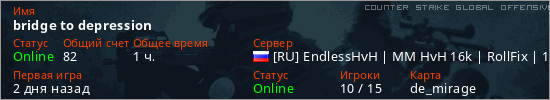 Играет на Counter Strike Global Offensive сервере. Страна: РоссияПервый раз замечен 15:06 04.12.2025