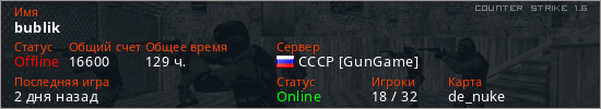 Последний раз был в сети 2 дня назад Игрок с таким ником замечен на 32 серверах
