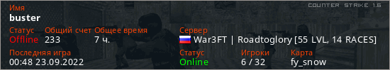 Играет на Counter Strike 1.6 сервере. Страна: РоссияПервый раз замечен 16:49 31.01.2021