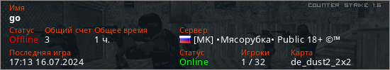 Играет на Counter Strike 1.6 сервере. Страна: РоссияПервый раз замечен 20:15 29.07.2023