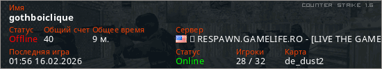 Играет на Counter Strike 1.6 сервере. Страна: СШАПервый раз замечен 01:31 16.02.2026