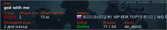 Играет на Counter Strike Global Offensive сервере. Страна: РоссияПервый раз замечен 07:38 12.03.2026
