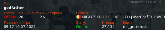 Последний раз был в сети 09:17 10.07.2025 Игрок с таким ником замечен на 9 серверах