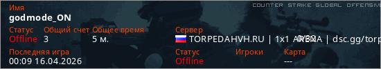 Играет на Counter Strike Global Offensive сервере. Страна: РоссияПервый раз замечен 23:50 15.04.2026