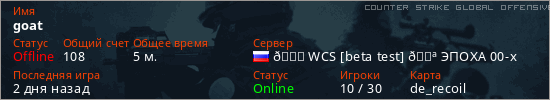 Играет на Counter Strike Global Offensive сервере. Страна: РоссияПервый раз замечен 23:05 05.03.2026