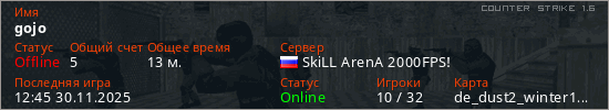 Последний раз был в сети 12:45 30.11.2025 Игрок с таким ником замечен на 31 сервере