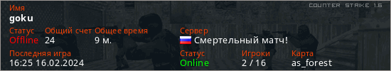 Играет на Counter Strike 1.6 сервере. Страна: РоссияПервый раз замечен 16:05 11.02.2024