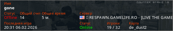 Играет на Counter Strike 1.6 сервере. Страна: СШАПервый раз замечен 20:25 06.02.2026