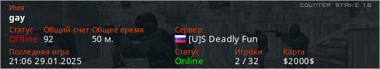 Играет на Counter Strike 1.6 сервере. Страна: РоссияПервый раз замечен 20:09 10.12.2022