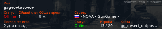 Играет на Counter Strike Source сервере. Страна: РоссияПервый раз замечен 10:13 17.03.2026
