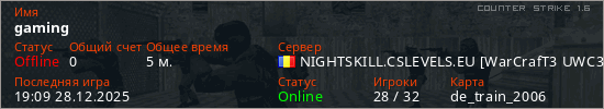 Играет на Counter Strike 1.6 сервере. Страна: РумынияПервый раз замечен 18:27 28.12.2025