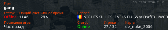 Последний раз был в сети Вчера Игрок с таким ником замечен на 30 серверах