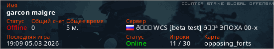 Играет на Counter Strike Global Offensive сервере. Страна: РоссияПервый раз замечен 19:07 05.03.2026