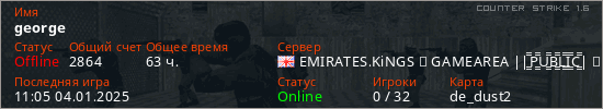 Играет на Counter Strike 1.6 сервере. Страна: ВеликобританияПервый раз замечен 16:12 08.01.2021