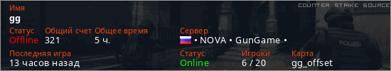 Играет на Counter Strike Source сервере. Страна: РоссияПервый раз замечен 16:15 30.10.2022
