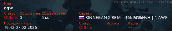 Играет на Counter Strike Global Offensive сервере. Страна: РоссияПервый раз замечен 19:21 07.02.2026