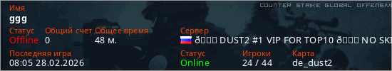 Играет на Counter Strike Global Offensive сервере. Страна: РоссияПервый раз замечен 14:09 13.01.2025