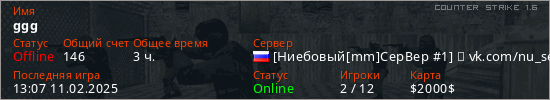 Играет на Counter Strike 1.6 сервере. Страна: РоссияПервый раз замечен 13:46 16.02.2021
