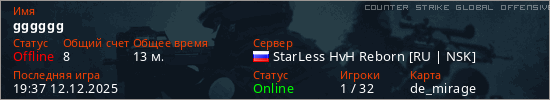 Играет на Counter Strike Global Offensive сервере. Страна: РоссияПервый раз замечен 13:55 19.11.2025