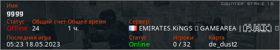 Играет на Counter Strike 1.6 сервере. Страна: ФранцияПервый раз замечен 10:01 27.01.2022