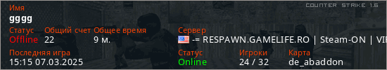 Играет на Counter Strike 1.6 сервере. Страна: СШАПервый раз замечен 13:18 04.03.2025