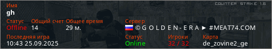Играет на Counter Strike 1.6 сервере. Страна: РоссияПервый раз замечен 11:44 16.05.2023