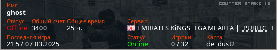 Играет на Counter Strike 1.6 сервере. Страна: ВеликобританияПервый раз замечен 08:34 19.09.2021
