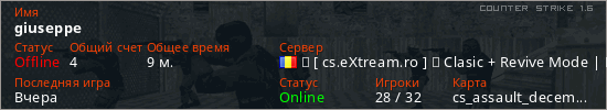Играет на Counter Strike 1.6 сервере. Страна: РумынияПервый раз замечен 04:58 09.11.2025